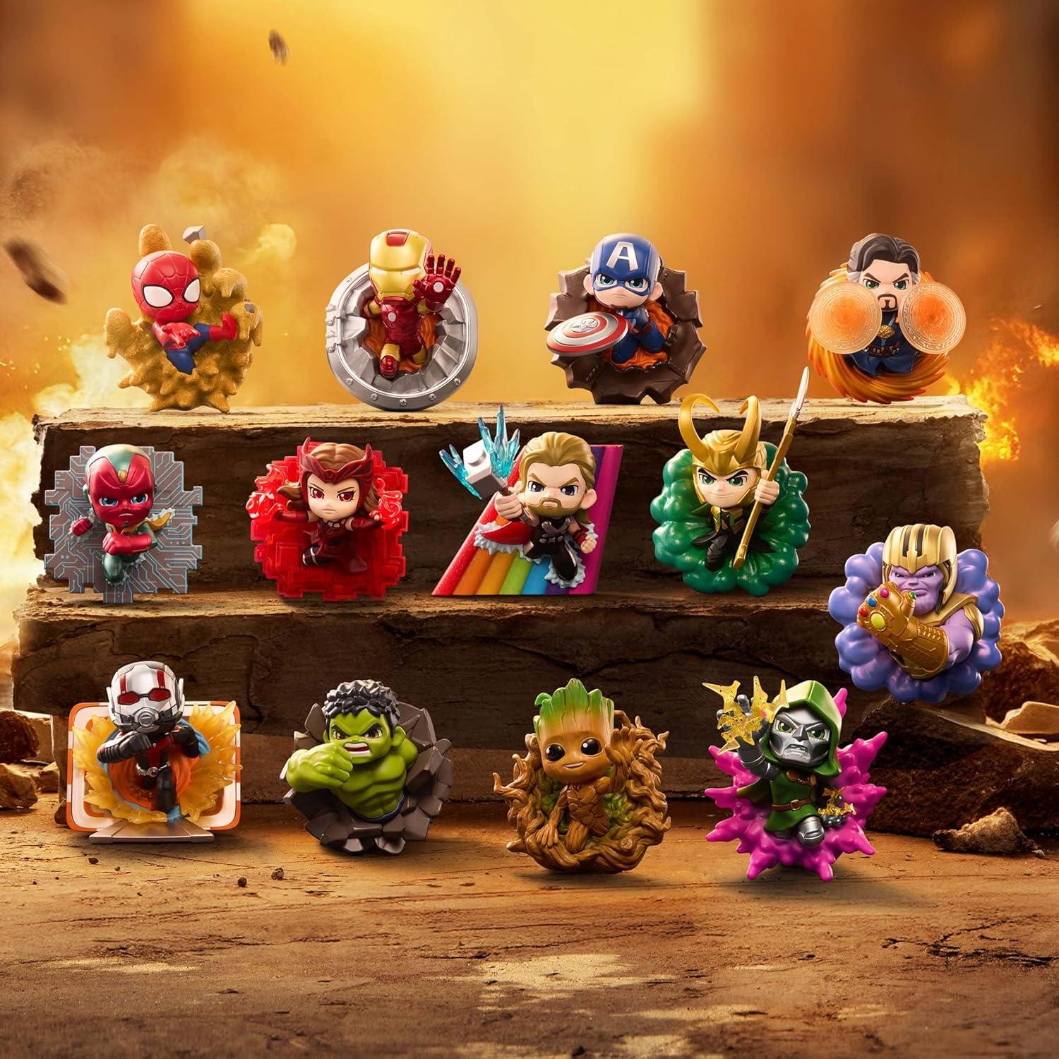POP MART Marvel Across the Infinite Series Figures: The blind box contains a random figure from a specific series. Each blind box only contains one figure. No one, including us, knows what's inside. This collection contains 12 blind box figures, one of them might be the secret edition.
